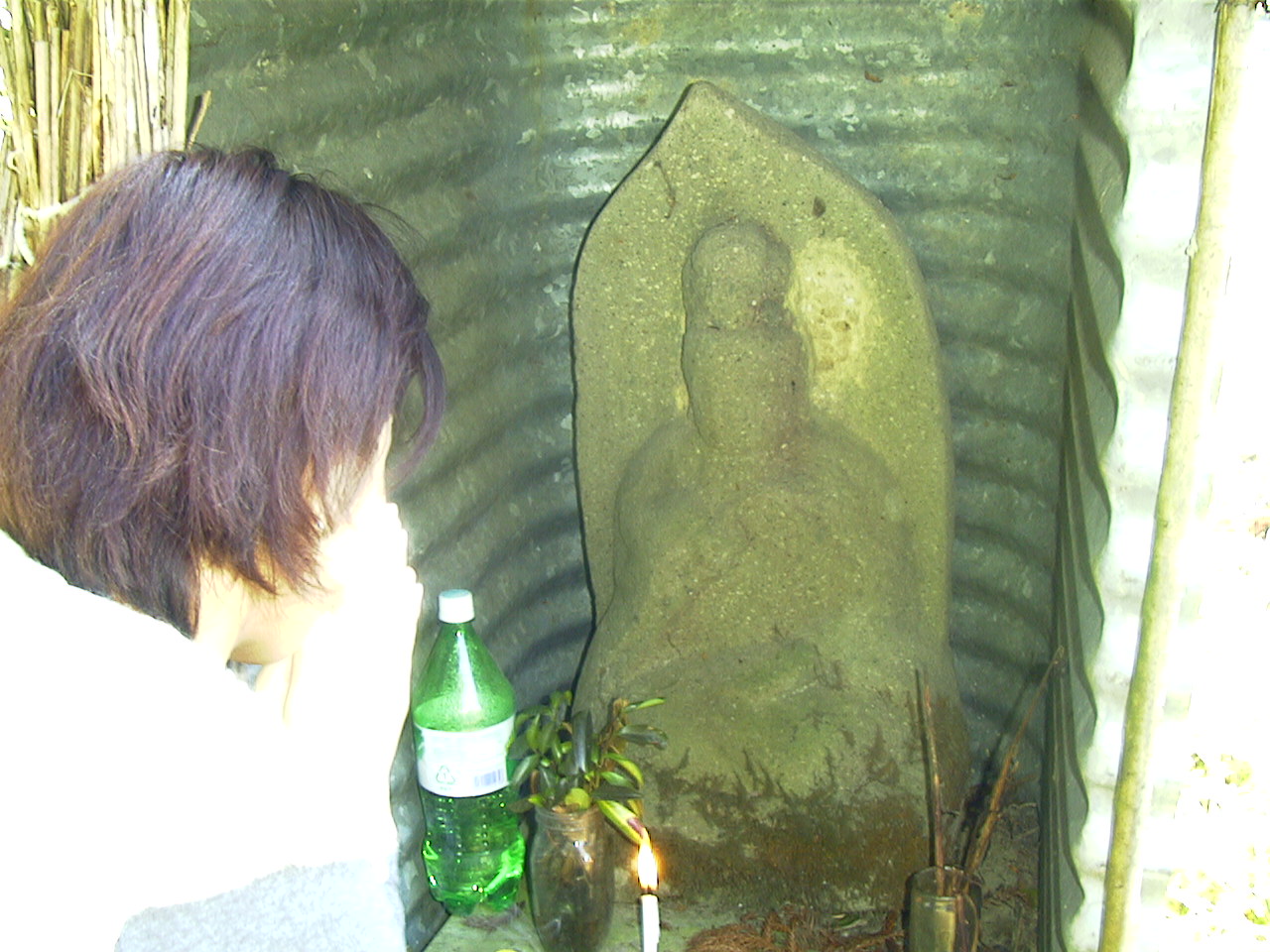 合掌像である、なかでも丁寧である。面貌は仏像離れして童子のようである。銘文に見える世話人の「檜垣屋藤左エ門」は今の石動の檜垣屋七代目の藤右衛門であろう。村肝煎をつとめ、俳号を一可、画号を守常といい、風雅の道にいそしみ数々の名作を遺し、安政三年に没した。この安政三年こそ、倶利伽羅峠観音の造顕最下年である。 所在地図 |